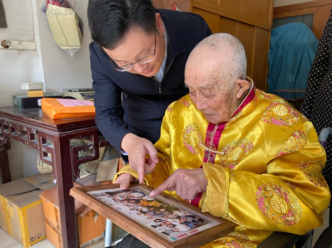 93岁朱春芳老人的全家福。 据了解,此次收到重阳大礼包的还有辖区内的退役军人家庭、计划生育特殊家庭的老人以及贫困、独居、空巢、失能的老人。如城街道针对不同对象分类施策,通过“定制”幸福、荣光、爱心、安心、暖心等不同主题的重阳大礼包,在空巢独居老人中开展志愿者“每日关爱”活动,对敬老院老人开展“重阳大联欢”活动……同时听取诉求,帮助他们排忧解难,着力解决老百姓最关心的民生问题,切实增强群众的参与感、获得感和幸福感,让全社会共享小康成果。