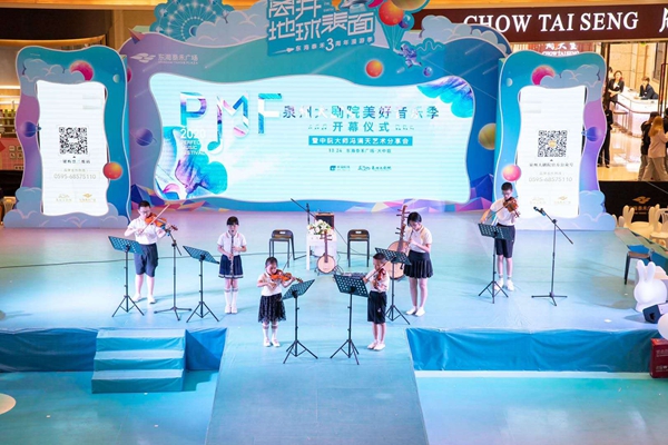 开幕仪式现场(主办方供图) 央广网泉州10月25日消息(记者万存灵 通讯员林奕晗)24日晚,2020泉州大剧院美好音乐季开幕仪式暨中阮大师冯满天艺术分享会活动在福建泉州落下帷幕。“美好正在发声”泉州大剧院特邀著名中阮艺术家冯满天作为此次音乐季的开幕仪式嘉宾,为市民朋友们带来了一场独具匠心的艺术分享会。 当晚,泉州大剧院青少年管弦乐团6名团员:黄丹桐、陈柏宏、徐涵锴、丁子涵、张铄涵、陈洁带来一首经典曲目《我和我的祖国》,这首耳熟能详的音乐作为开场,将观众引入了音乐的精彩世界,现场氛围变得轻松活泼。在一阵热烈掌声中,中国著名音乐人,中央民族乐团中阮、月琴演奏家、国家一级演员冯满天步入分享会现场,不仅向泉州观众介绍了阮的不同种类及音色,还分享了关于传统民族乐器的文化背景。现场一首首即兴原创的音乐作品,以音乐会友,呈现了冯满天对阮的“痴”,也展现出阮在汉族乐器中的独特音乐魅力。在金风送爽,秋色宜人的10月里,在一声声恬静空灵,余音绕梁的阮声中,2020泉州大剧院美好音乐季正式拉开帷幕。