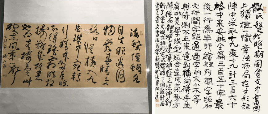 活动现场 在柳江南心中有一种情怀,这是爱国情怀、民族情怀、江南情怀、军旅情怀、故园情怀、文化情怀。为了体现这些情怀,他用一些大气磅礴的诗词歌赋等来表达,书法的种类上则是用大幅草书和隶书来书写呈现。其中,《泌园春·雪》、《史记孔子、屈原评语》均长达16米之巨,采用草书和隶书写成,气势雄强,壮观夺目,展示了书家深厚书法功力与胸襟气魄。 据悉,本次展览将于10月25日持续至10月30日,在无锡博物院二楼2、3号厅展出。