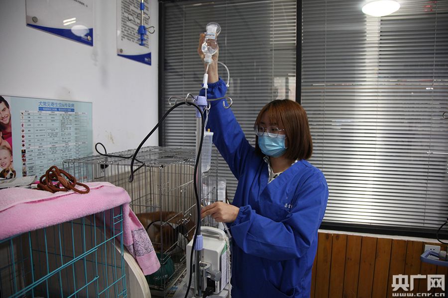 医生准备为一只宠物狗输液(央广网记者 徐升 摄) 在外人看来,宠物医生整天与毛茸茸的萌宠为伴,这必然是一份令人愉悦的工作。医生余天顺说:“每天和宠物接触,衣服上全是绒毛,没有一天是干净的。所以,这份工作只有发自内心的喜欢,才能坚持做下去,做到真正的内心愉悦。”在接诊时,医生余天顺像对待自家宠物一样,轻轻地抚摸它们,安抚它们的情绪。看得出来,让毛茸茸的小家伙们重新活蹦乱跳,正是他的乐趣所在。