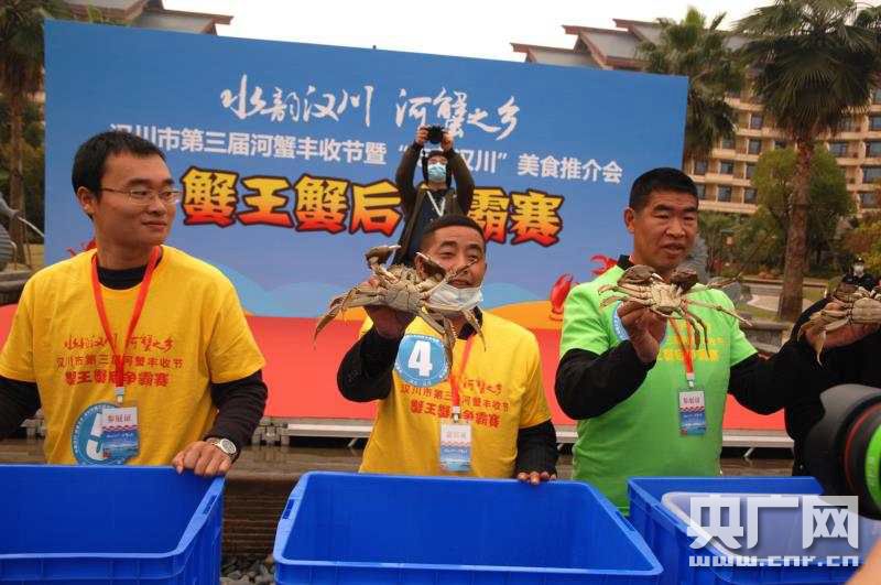 央广网汉川10月28日消息(记者凌姝 通讯员 郭俊杰)金秋庆丰收,蟹香沁心头。今天,湖北汉川市第三届河蟹丰收节暨“吃在汉川”美食推介会举办。来自汉江流域15个城市的120多家农业企业的河蟹、小龙虾、鳜鱼等优质水产品以及大米、蔬菜、瓜果等特色农产品展销推介等在内的系列活动精彩呈现。现场评出今年汉川的蟹王503克,超过1斤,蟹后为408克。