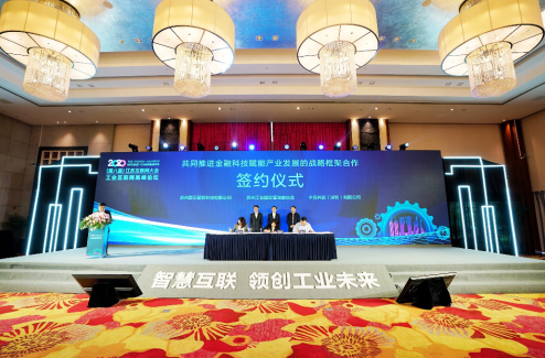 签约现场(图片由大会组委会提供) 现场,苏州工业园区与江苏省通信管理局就关于共同推进“5G+工业互联网”发展战略合作项目进行签约,与新华三集团就双方共同推进工业互联网工作签署合作框架协议,与平安科技(深圳)有限公司和苏州黑云智能科技有限公司共同签署关于“推进金融科技创新与应用的合作框架协议”,进一步深化和扩大合作,为园区“5G+工业互联网”加速发展注入新的强大动能。