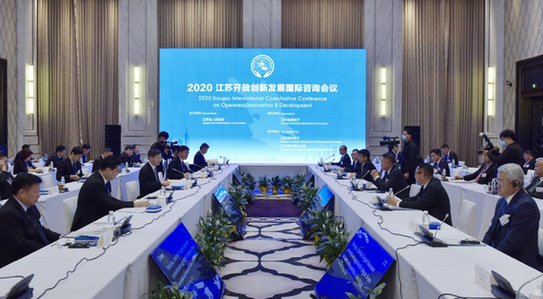 新华网南京11月7日电(庞雪汀)11月6日,第三届中国国际进口博览会期间, 江苏省政府在上海举办以“深化产业合作,携手共赢发展”为主题的2020江苏开放创新发展国际咨询会议。会议重点探讨在世界百年未有之大变局加速演变、中国加快构建双循环新发展格局的大背景下,如何应对变局、抓住机遇,进一步深化开放创新合作,稳定产业链供应链,塑造产业竞争新优势,实现高质量发展。江苏省副省长惠建林出席会议并讲话,省政府副秘书长黄澜主持会议。省商务厅等省级职能部门、13个设区市人民政府有关负责人,与39家跨国公司来沪参加进口博览会的高层负责人出席会议。