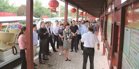 2020年9月,省司法厅召开全省法治乡村建设推进会,部署开展法治乡村建设“体系完善、基础强化、惠农服务、载体优化、精准扶贫”五大行动,推动提升乡村治理法治化、规范化水平。图为与会人员实地参观江阴市璜土村法治文化阵地。