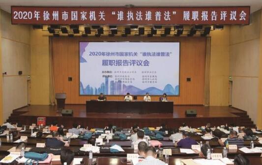 省委依法治省办、省司法厅联合印发《江苏省国家机关“谁执法谁普法”履职评议实施办法》,明确“谁执法谁普法”责任单位工作任务和考评细则,推动形成分工负责、各司其职、齐抓共管、全社会广泛参与的普法工作合力。图为徐州市2020年国家机关“谁执法谁普法”履职评议现场。