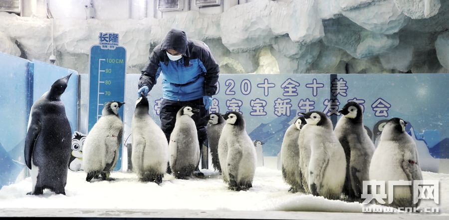 珠海一举成功繁育9只帝企鹅(央广网发 通讯员供图) 据了解,帝企鹅人工繁育一直是业内难题,一只雏鸟的成活要经历多重的困难。100%的存活率标志着企鹅饲养技术的成熟。资料显示,世界上现存企鹅共有18种,长隆引进了7种,已有5种成功取得繁殖,而且繁殖数量每一年都在递增。企鹅对空气、水质、食物要求非常高,因为它们在野外生活的环境本身就是非常干净的,因此要实现人工保育环境的繁育需要超高的硬件和技术水平。 据悉,长隆集团的保育团队在企鹅孵化期间,坚持每天24小时的密切监测。如果幼雏发育良好,能成功孵化,而且亲鸟可以喂养,保育员就不会过多干预企鹅的繁育过程,予以企鹅更大的空间。