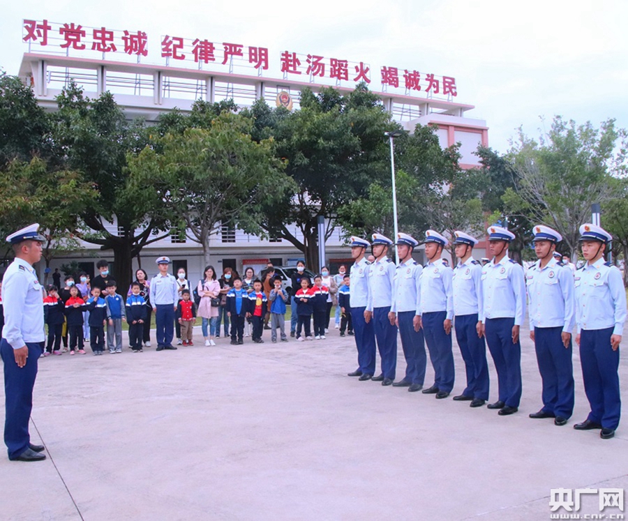 森林消防员正在进行队列演示(央广网发 通讯员供图) 央广网厦门11月15日消息(记者陈庚 通讯员黄山鸿 黄志杰)11月是消防宣传月,昨天上午,厦门市曾营小学部分师生走进福建省森林消防总队厦门市驻防分队参观学习,深入了解消防知识,提高森林防火意识。