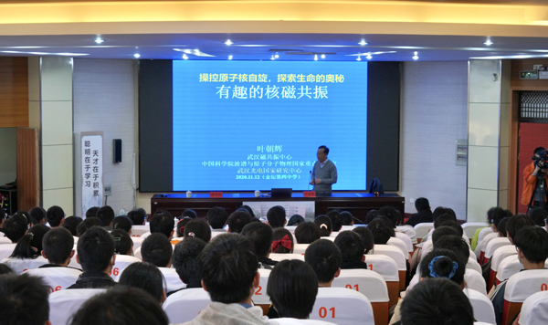 传承华罗庚精神,争做时代栋梁。11月12日,由中国科学院、中央宣传部、教育部、科学技术部、中国工程院、中国科协主办,中共常州市金坛区委、常州市金坛区政府承办的华罗庚同志诞辰110周年活动将在常州金坛举办。12日下午,中国科学院院士叶朝辉来到了金坛区第四中学,作《操控原子核自旋,探索生命奥秘——有趣的核磁共振波谱学》主题报告,他用通俗易懂的方式,为同学们讲述核磁共振波谱学的奥秘。