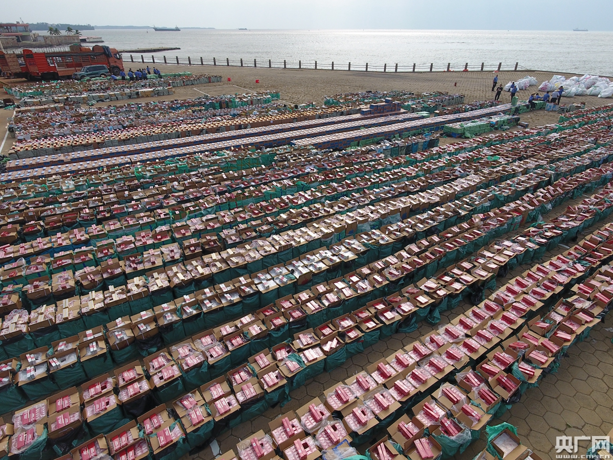 现场震撼!30余万条香烟被广东海警查获 货值近7000万