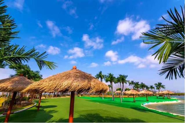 龙湾湖畔公园一角 “躺在星空屋里,看日出日落;漫步龙湾生态园,看花谢花开。”在长泰海滨城里,湖面、水系、绿道、花海、白沙滩等错落有致的分布在以低密度别墅、洋房为主的国际社区之间,为旅游休闲配套的民宿、星空屋和投资十多亿元打造的生态公园等都已经开放。“我们正在建设的龙湾小镇定位为中国最大的新唐风温泉主题综合旅游度假区,其中包含十余家高端主题民俗客栈、龙湾塔、唐人街、江海传奇演艺中心、龙湾梦剧场、和风四季温泉精品酒店等各种旅游设施,采用‘公园+温泉+演艺’以景带商的经营模式,再现‘大唐盛世,诗意唐韵’的繁荣景象。预计将于2022年5月对外营业。”长泰海滨城项目策划总监陈波说。