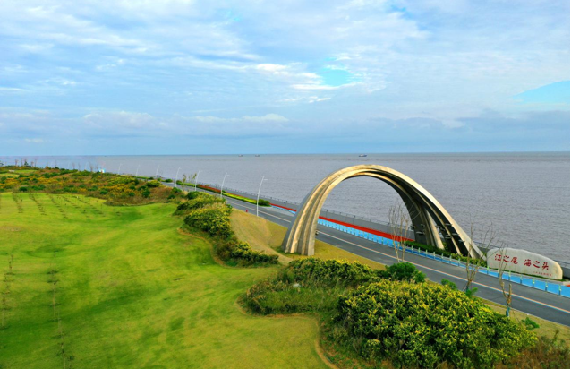 江海文化景观大道 “运气好的话,你在这里可以看到三水交汇的奇观;对面可以看到崇明岛,这里也是海上看日出的网红打卡地。”站在“江之尾,海之头”一个石碑前,启东圆陀角旅游度假区委会党群局局长龚红宇将手指向石碑45度方向说,“我们度假区最大的资源特色,就是它既靠江也靠海,这里是长江入海口,然后以长江为界限,北边是黄海,南边是东海,度假区的江堤和海岸形成一个角,三水交汇的地方像一个圆陀角,所以取名为圆陀角旅游度假区。” 圆陀角旅游度假区是启东重点开发、打造的又一个以文旅为特色的旅游度假区,度假区里引进了恒大海上威尼斯项目和新湖长江公园项目。恒大海上威尼斯项目总占地面积9000多亩,规划打造一个集酒店住宿、会议会展、文化娱乐、体育运动、养生保健以及度假人居等功能于一体的大型滨海度假综合体。截至目前,该项目已累计完成投资200多亿元,威尼斯酒店、国际会议中心、饮食中心、运动中心、儿童欢乐中心等九大中心以及四星级酒店、美食一条街等旅游设施已建成并对外开放。依托滨江临海的区位优势和独特的江海旅游资源,恒大海上威尼斯已成为长三角地区一个新兴的旅游度假目的地。新湖长江公园整体项目还在火热建设中,但郁金香花海等景点已经对外开放。