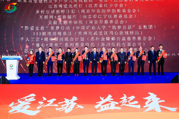 省领导为获奖代表颁奖。 开幕式上播放了“万社担使命,善美新江苏”主题视频,江苏省政府副秘书长诸纪录宣读了《省政府关于授予第五届“江苏慈善奖”的决定》,赵世勇等省领导为获奖代表颁奖。在开幕式后举行的“现代慈善的理念创新与高质量发展”慈善高峰论坛上,国内公益慈善界知名专家学者围绕现代慈善高质量发展、后扶贫时代慈善工作、网络公益慈善等议题展开了深入讨论。 社会组织、慈善力量是社会治理的重要主体,是助力江苏经济社会高质量发展不可或缺的重要力量。与首届江苏慈善论坛不同的是,本次是江苏首次举办全省社会组织盛会,是省级层面首次搭建的社会组织风采展示、合作交流、资源对接平台。值得一提的是,社展会凸显党建引领,展示交流区围绕“党建引领社会组织高质量发展”主题,设有“强化党建引领、服务国家战略、践行宗旨使命、参与社会治理”等四个板块,展览面积达1.2万平方米,江苏各级具有代表性的140多家优秀社会组织亮相展会,以多种形式展示工作特色和服务成效。 展会为期2天,期间同步举行“互联网慈善(网络募捐)”“社会组织助力脱贫攻坚”“党建引领社会组织高质量发展”等三个主题分论坛,并开展社会组织公益项目集中签约活动。