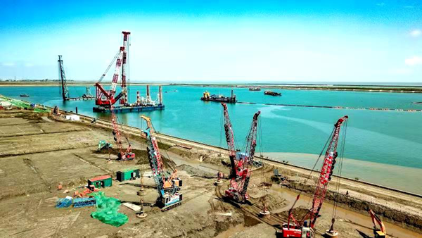 “2+2”码头建设现场 “明年底,通州湾新出海口吕四起步港将建成投运,实现公铁水、 江海河联运无缝衔接,为启东乃至南通高质量发展提供又一重要支撑。”启东吕四港经济开发区副主任吴杰说,该项目是建设长江经济带江海联运新枢纽、长三角高质量发展新样板的重大标志性项目。 十年磨一剑,吕四港迎来战略新机遇 吕四已经有1300多年历史,吕四渔港是全国六大中心渔港之一。2020年1月,南通市委十二届十次会议明确以通州湾作业区为主体港区、吕四港作业区为起步港区加快新出海口建设。 吕四起步港区“2+2”码头工程总投资约46亿元,位于吕四作业区西港池南侧,建设内容包括4个10万吨级通用泊位(2个预留集装 箱功能)及后方陆域配套工程,工期18个月,计划2021年底建成投运。 在很多人印象里,吕四港还是一个古老的小渔村,何以能堪当如此重任? 机遇都是创造出来的。2008年吕四港开发实质性启动以后,启东市委市政府和开发区领导班子科学谋划、学习借鉴先进港区经验, 突破建港技术瓶颈,充分挖掘资源、区位、航道的禀赋优势,实现了航道升等升级,栈桥式、贴岸式码头开发建设协同推进,开发区的实际管辖面积从最初的3.01平方公里到如今的43.8平方公里,奠定了吕四港承载产业腾飞的发展优势。
