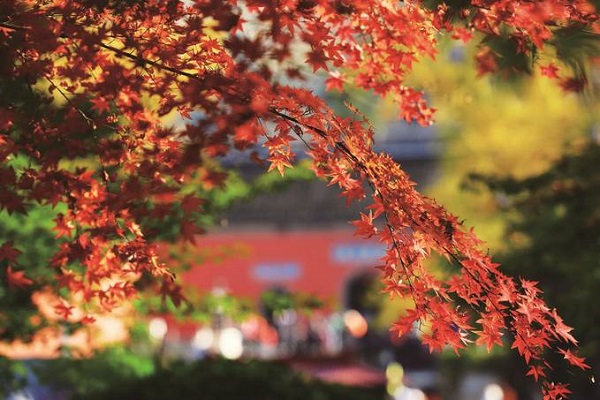 栖霞枫叶正红