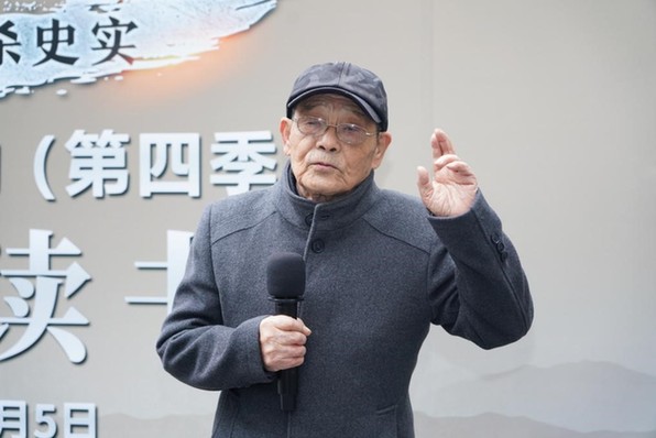 南京工程学院读书会成员朗诵《拉贝的诉说》 87岁的南京大屠杀幸存者路洪才现场讲述了自己和家人在南京大屠杀时期的经历。路洪才说,当年他还是一个孩童,家住老门东,家里有10个人。虽然家人在日军到来之前就挖好了地洞躲藏,但家中6人还是被残忍杀害了。他说:“留给我们这些幸存者的时间所剩不多了,但这些惨痛的历史一定要一代一代传下去,我们一定要坚决反对战争,举起和平的大旗,让我们后人能够代代在和平、和谐、平安的环境中成长。”