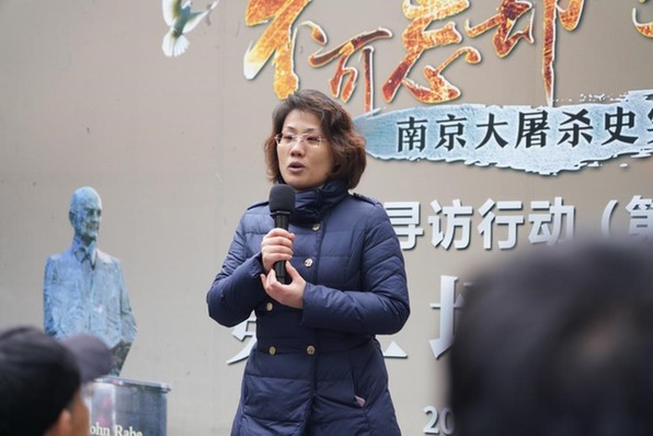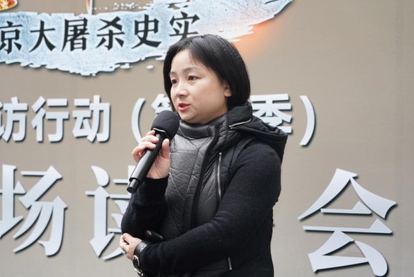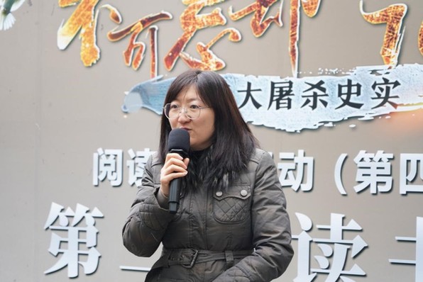 全国劳动模范、新街口百货商店股份有限公司电子商务部总监吕雪瑾分享 读书会后,读书会成员和市民代表向拉贝雕像敬献鲜花,并参观拉贝纪念馆。大家表示,希望通过今天的阅读寻访活动,让更多人铭记南京大屠杀历史,铭记拉贝等国际友人的善举,同时向拉贝所代表的国际人道主义精神和国际合作交流精神的致敬,共同呼唤世界和平。(徐红霞 杨升辉)