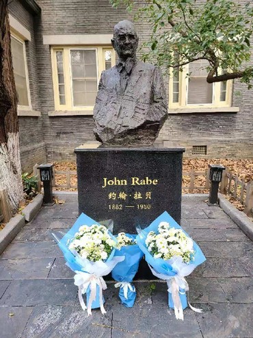 读书会成员和市民代表向拉贝雕像敬献鲜花 |