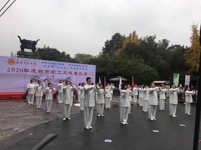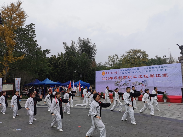 央广网成都12月6日消息(记者韩民权)由成都市总工会主办的“绿道上燃烧卡路里 百千万释放多巴胺”成都职工“爱成都·迎大运”系列体育赛事——2020年成都市职工太极拳比赛决赛6日举行,各区(市)县及市属基层企事业单位的1000余名职工参加了比赛。