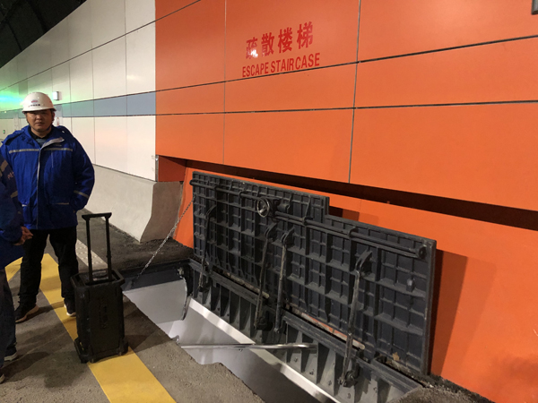 长江五桥夹江隧道内的疏散楼梯(庞雪汀 摄)