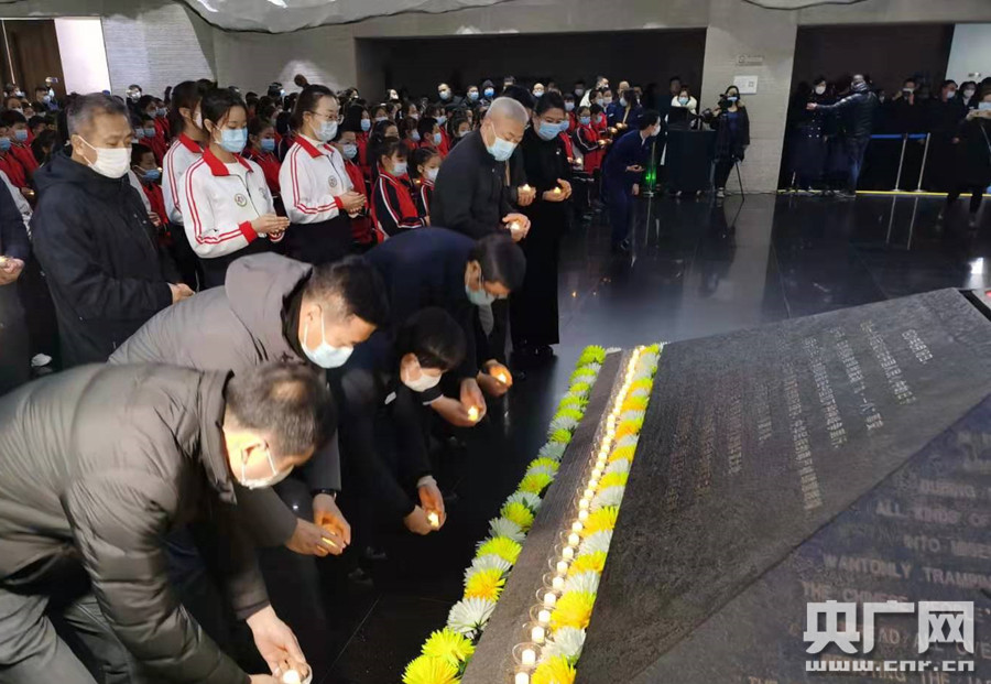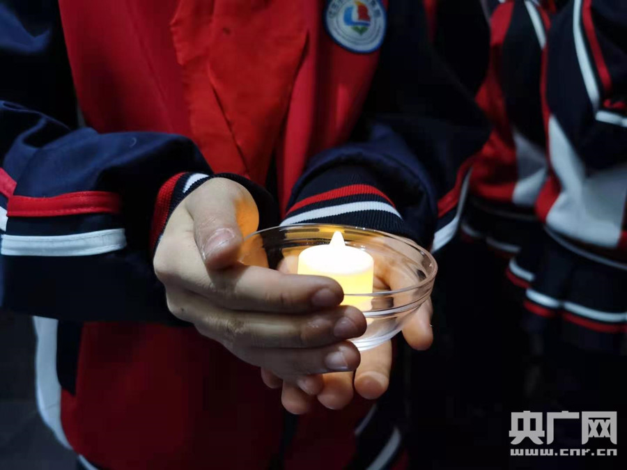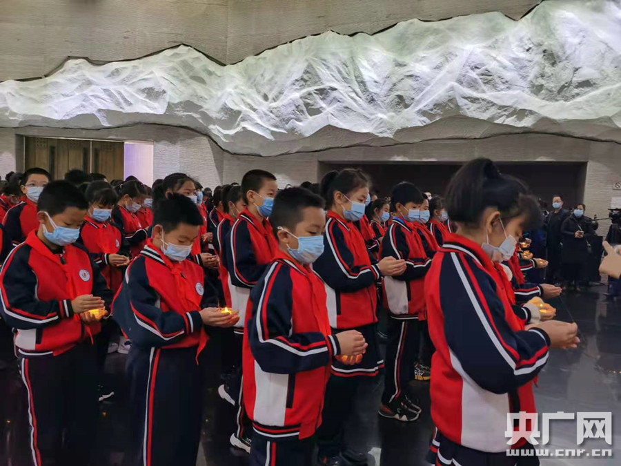 上午10点30分左右公祭悼念活动开始,全场人员齐唱中华人民共和国国歌。国歌唱毕,全体人员秉烛低首肃立,为死难同胞默哀。 ![]() 全场默哀(央广网记者 张静 摄)