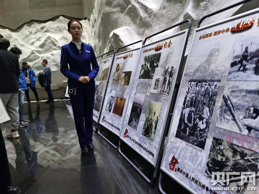 全场人员列队依次在卧碑前敬献蜡烛( 摄影张静) 仪式结束后,人们参观了《纪念南京大屠杀被害同胞遇难83周年图片展》,观看小志愿者表演的抗战历史互动剧《黑土英魂》。另外,今天“九·一八”历史博物馆官方微信平台也同步举行祭奠活动。 ![]() 工作人员讲解展出图片(央广网记者 张静 摄) |