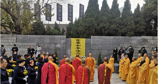 2020年12月13日下午3点,在第七个南京大屠杀死难者国家公祭日之际,中国60多名僧侣及信众聚集在“南京大屠杀遇难者名单墙”前举行“世界和平法会”。