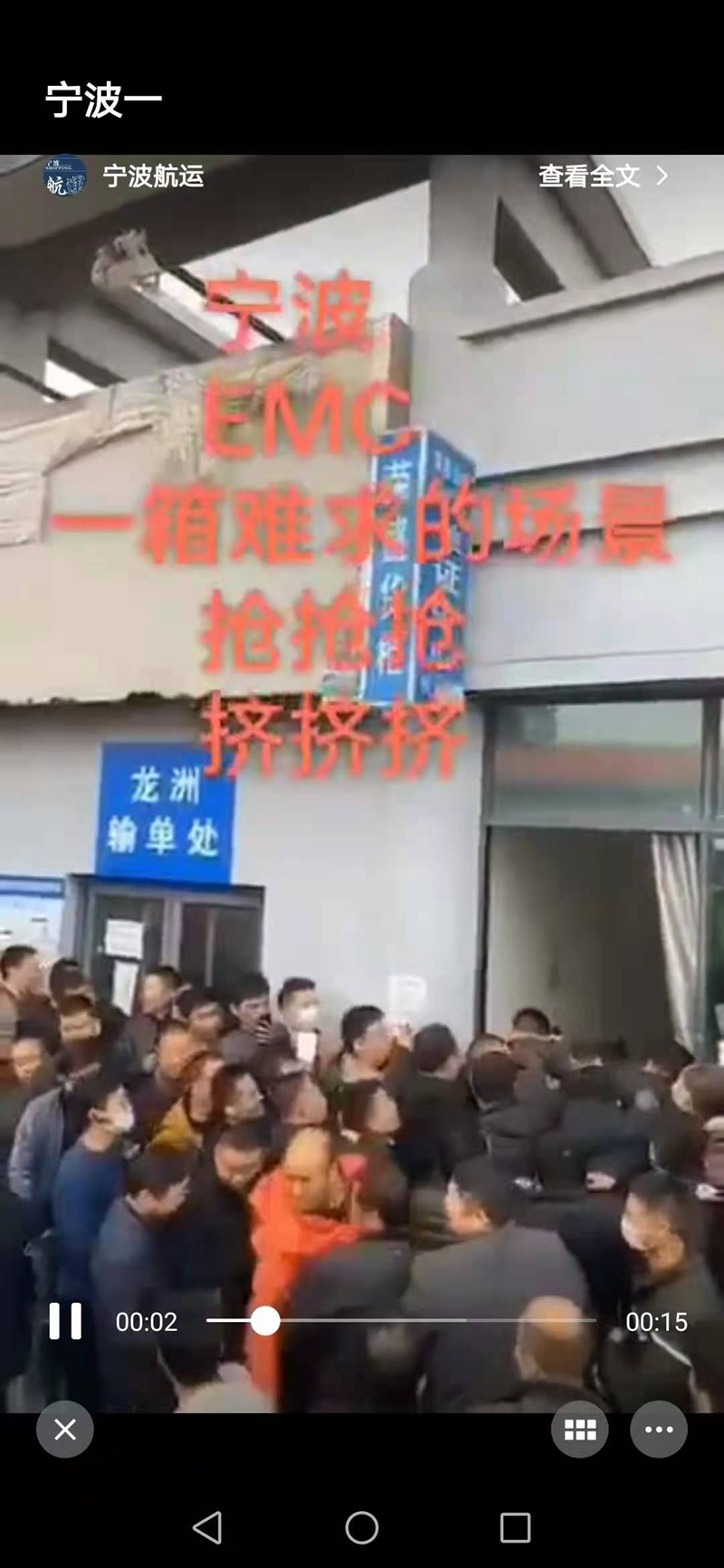 集装箱司机抢箱视频截屏 央广网宁波12月9日消息(记者曹美丽)这两天,宁波外贸人的朋友圈被一则司机抢箱视频刷屏。视频中,集卡车司机为了提一个集装箱,在打单窗口挤成一团。没错,集装箱“一箱难求”的现象,正让宁波众多外贸企业颇为烦恼。 “现在确实是空箱难求。从9月份开始,到现在越来越严重了。”宁波市交通运输协会集卡分会会长周海东告诉记者,由于疫情影响,大量的集装箱滞留在国外港口,有的甚至在船上无法卸货,导致从中国出去的箱子,大约每3个箱子只能回来1个。