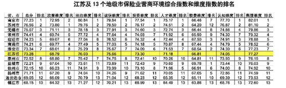 14日,江苏省银保监局联合南京大学共同发布了《2020江苏保险业营商环境评价报告》(下文简称《报告》)。《报告》显示,在满分100分的情况下,2020年江苏省保险业营商环境综合指数为73.28,受疫情影响,这一指数较去年下降0.18,整体处于良好水平。南京、苏州、无锡、常州、宿迁、南通和淮安等7个设区市保险业营商环境综合指数高于全省平均水平。