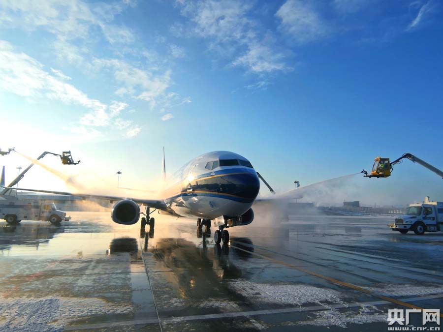 飞机除冰雪作业(央广网发 张佳伟 摄) 当日16时,乌鲁木齐国际机场小雪逐渐转为中雪,16时30分飞行区管理部按照计划,对跑道、滑行道和联络道口区域开展除雪作业,确保道面处于适航状态。受持续降雪、降温影响,道面摩擦系数呈现降低趋势,至22日凌晨4点,该部门共计清扫跑道滑行道6次、停机坪2次,出动178人次、138车次,累计除冰雪面积超过300万平方米。 目前,所有除冰雪车辆集中对机坪积雪进行处理,预计今天17时30分机场道面积雪全部清理完成,机场全面恢复正常运行。据了解,截至今天9时,受此次降雪天气影响,机场延误61班、取消8班。 |