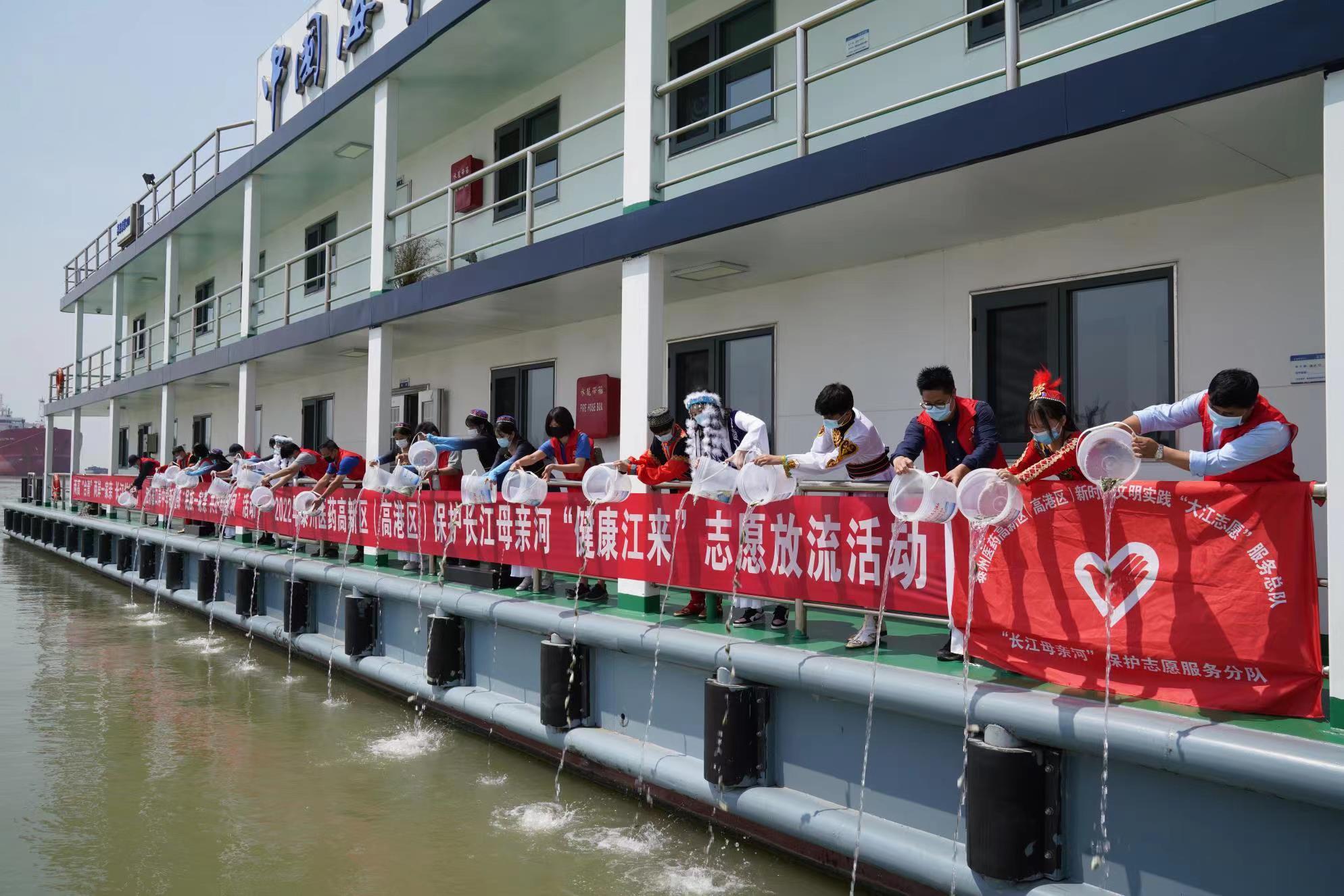 泰州医药高新区(高港区):民族一家亲 共护母亲河,50名志愿者放流7万尾河豚鱼苗