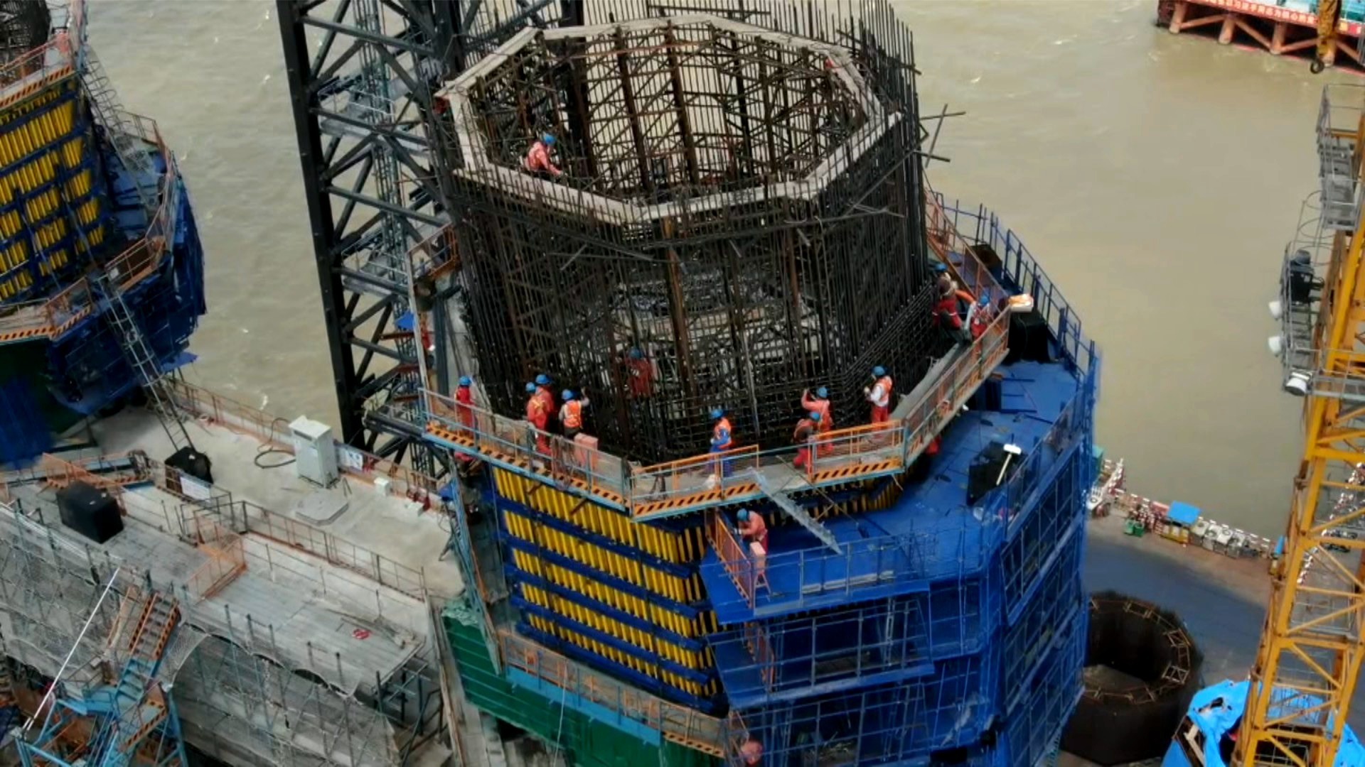 千人战高温,常泰长江大桥主桥墩中塔柱“长个儿”啦