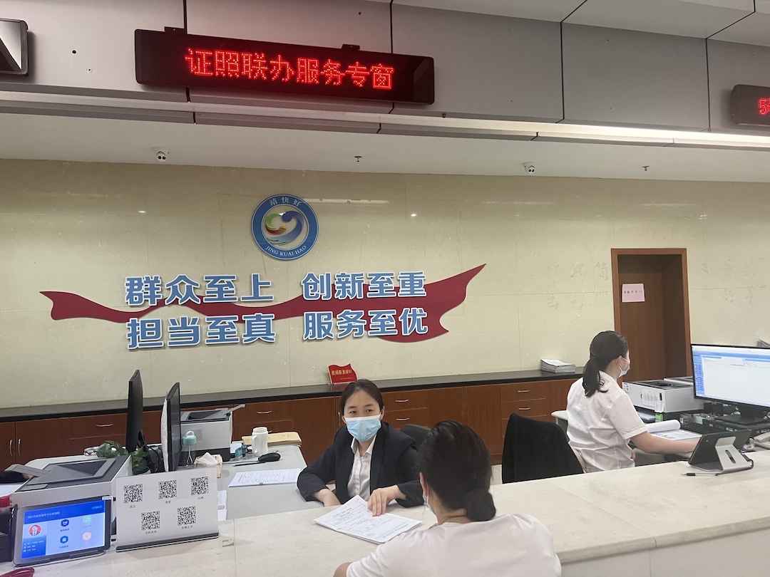 ▲“证照联办”服务专窗 近日,靖江市一家药店需要变更经营地址,通过企业开办专区“证照联办”服务专窗,同步办理了新的营业执照和药品经营许可证,全程不到一个小时。“证照”是企业进入市场的两把“钥匙”,“照”指的是营业执照,“证”指的是各相关行业主管部门颁发的经营许可证。以往,营业执照和药品经营许可证需要分开办理,申请人要跑两个窗口,提交两套材料。“证照联办”后,办理人只需携带一套相关材料,填写一张申请表,经由前台综合受理、后台并联审批,就能同时办理“证”“照”,极大方便了企业。