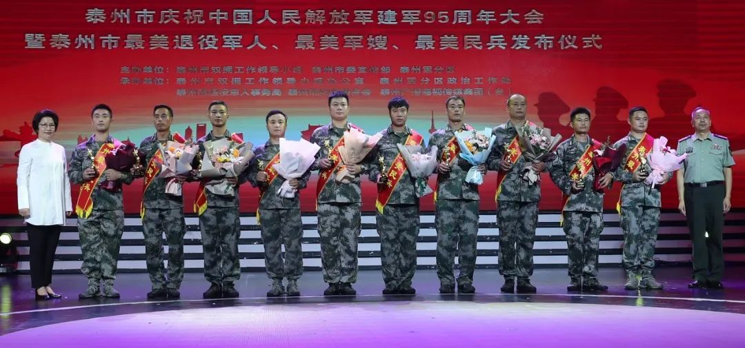 “八一”建军节到来之际,7月29日下午,泰州市各界隆重集会,庆祝中国人民解放军建军95周年,表彰最美退役军人、最美军嫂、最美民兵,共庆建军节、共叙鱼水情。