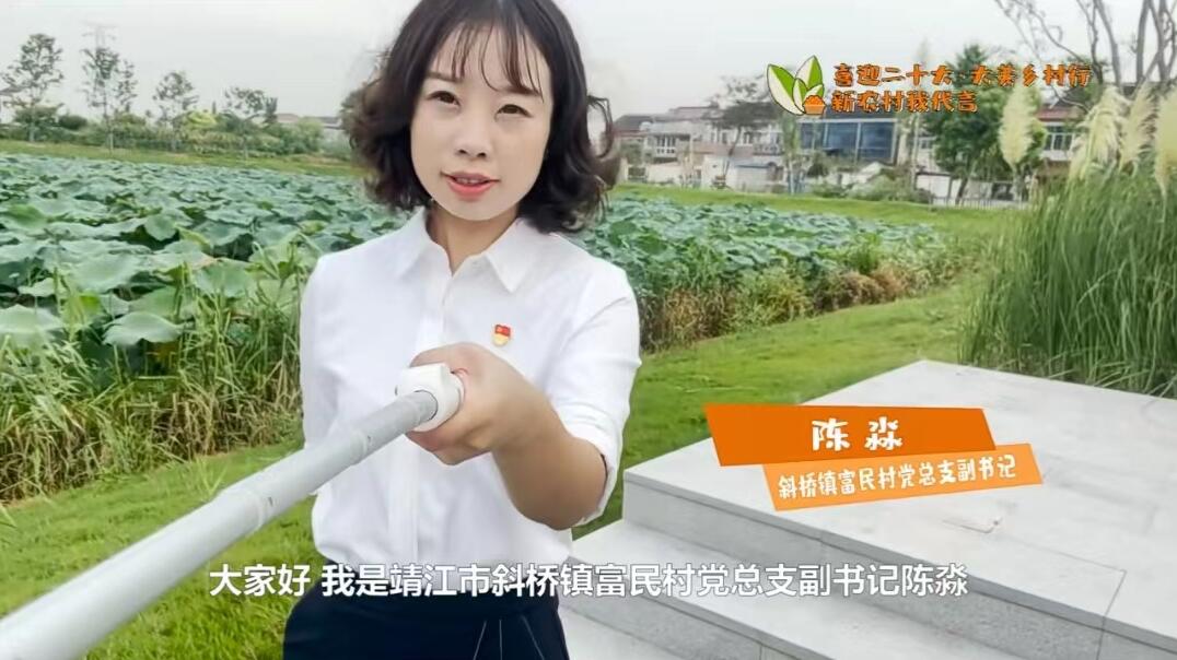 “夏日炎炎,瓜蒌园内一片生机盎然,满园的果实挂满藤蔓,向我们诉说丰收喜悦”“我身后是我们村的网红打卡地,荷花池旁修建了亲水平台,搭建了‘清风亭’”……两分钟左右的Vlog中,村支书手持自拍杆,化身“代言人”,热情地向网友们推荐本村特色。这是江苏省靖江市“强国复兴有我·喜迎二十大 点赞新变化”网上主题宣传活动的场景,20位村支书话为农村“代言”。