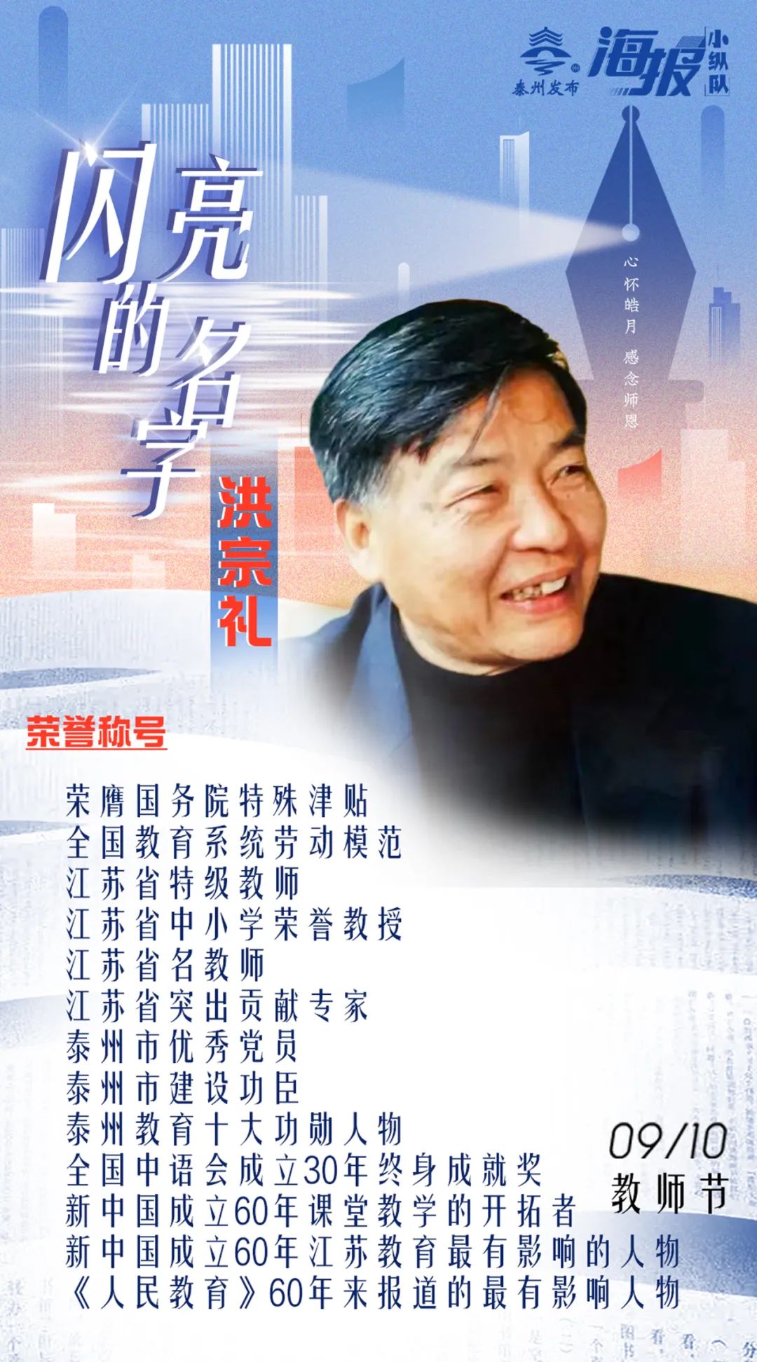 中国当代著名语文教育家。从教60年来,洪老师在语文教学、教材编写、教育科研领域树起了三座丰碑,完成了从一个普通教师到教育家的凤凰涅槃,创造了当代中国语文教坛的奇迹。他坚持中学语文教学改革,提出构建语文教育“链”的理论;总结了“五说”语文教育观和“双引”教学法;主编经国家审定通过的三套一类语文教材;主持全国教育规划“九五”“十五”重点科研课题,主编国家“十一五”规划重点图书十卷本《中外母语教材研究》。出版专著20多部,文集2部,在《人民日报》《人民教育》等报刊发表教研文章300余篇。2014年《中学语文教学整体改革的实践与研究》获首届国家级基础教育教学成果一等奖,受到习近平总书记、李克强总理等党和国家领导人接见并合影。专家评价:“这是洪氏语文”。 TEACHER'S DAY