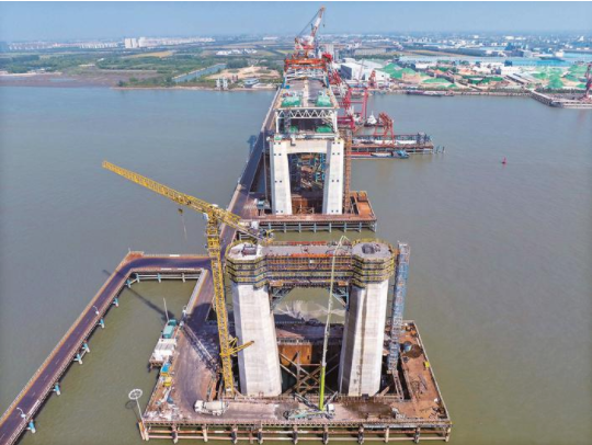 近日,经过连续19个小时的浇筑,常泰长江大桥4号墩墩顶横梁第二节浇筑完成,标志着大桥主航道桥下部结构施工圆满完成,全面转入上部结构施工阶段。