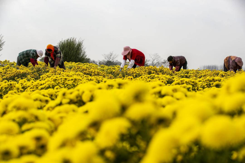 眼下,江苏省兴化市千垛景区种植的婺源皇菊和金丝皇菊进入大面积盛花期,真个是“蟹肥菊黄时,风景又一季”,当地农民忙着采摘收获。
