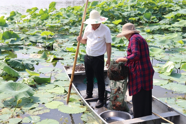 “现在国家对粮食生产扶持力度很大,有种粮大户地力保护资金、农业保险、托市收购等,出现倒伏、病虫害还有保险赔付,保费不用自己出,种植过程中遇到问题可以向专家请教,植保全程机械化,省心省力。有了这些支持,我才敢接这180亩地,效益好的话我还想继续扩大规模。”王进亮说。 村干部:“四格”夯实硬实力,“五子”提振精气神 沙北村的9100多亩鱼塘和藕田,多年前由当地农户自行开发、经营,管理混乱,效益不高。2019年起所有村经济合作社改成村股份经济合作社,鼓励村民以承包经营的土地、资源入股。在这个政策指导下,沙北村实施产权制度改革,将全村所有资源收回村集体统一经营。村党总支书记王建友说,在这个过程中,刚开始也有部分村民抵制,在市、镇党委政府的大力支持下,通过耐心工作,最终成立村股份经济合作社,村民的承包经营权转为村股份经济合作社的股权。 在此基础上,沙北村投入200多万元对塘口进行改造,“小变大、粗变精”,将全村数百个小塘口整合成80多个精养塘口,每个塘口通电、通路,疏浚生产河道5000多米,让每一个塘口上水方便、放水自由。改造完成后全村塘口在镇资源招标平台上公开招标,承包价格由以前的平均800元/亩提高到1300元/亩。2021年底,沙北村集体经营性收入达到1148万元,股份经济合作社拿出900多万元向2350名村民股东分红,人均分红近4000元。 在王建友看来,发展的“秘诀”正是抓党建,通过创新“五子四格工作法”,夯实了硬实力,提振了精气神。“‘五子’是抓手,‘四格’是目标。”王建友说,“五子”就是一张单子、一个本子、一把尺子、一副担子、一只框子,“四格”是指田成方格、事在网格、人讲风格、发展升格。 “田成方格”是第一步。这几年,沙北村探索“加强党建引领,深化资源管理”,规范所有塘口的资源管理,使每块田都有规范的合同文本、每分钱都掌握在村集体手中,从制度上将规范资源管理方案化、格式化。 培育特色产业,向资源要效益,促进产业兴旺与生态发展同步,这是沙北村努力践行的“发展升格”。沙北村引进新的生产方式,提高种养效益。在村干部王闯兵等人的带动下,推广了4000多亩荷藕套养小龙虾等复合种养模式,促进农民增收。引进荷藕新品种,与沙沟藕厂合作建立1000多亩荷藕绿色产品基地。成立沙北村生态养殖联盟,引导村民按标准养殖,推动生态环境保护和水产品质量的提高。