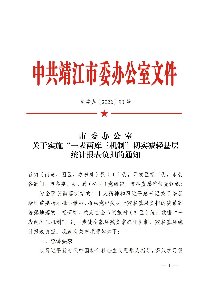 为切实给广大基层干部解套松绑,让基层干部轻装上阵,把更多时间和精力用在干事创业上,靖江市探索建立“123”机制,即明确基层上报“一套表”、建立市镇数据“两个库”、形成协调监督考核“三项机制”,全面精简、规范基层村(社区)的报表报送。