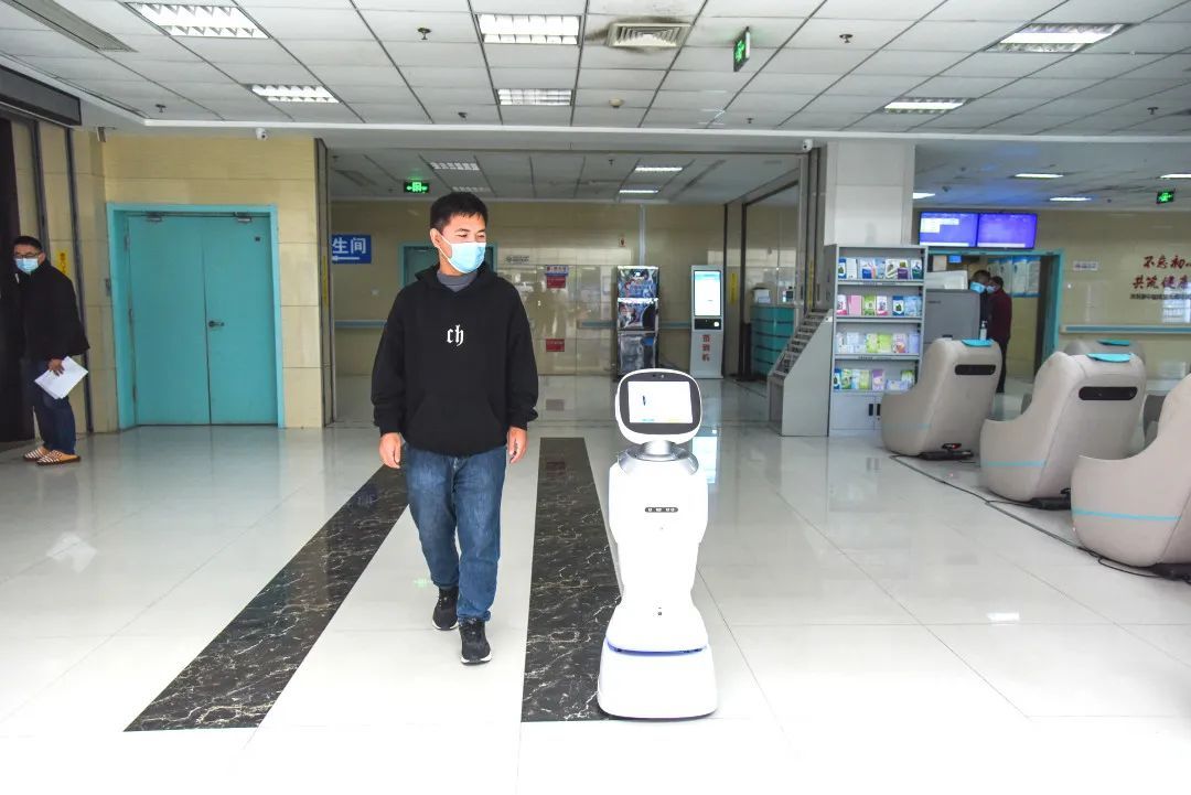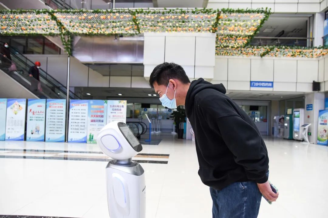 “您好,我是机器人‘旺宝’,请问您需要什么帮助?”“请问影像室在哪里?”“影像室在一楼大厅西侧,我可以带你去。”……