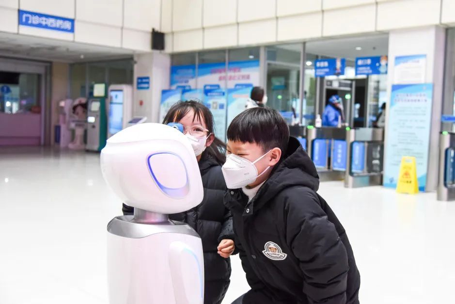 闲暇时,智能导诊机器人还能唱歌、跳舞,这令现场的小朋友们新奇不已,忍不住要跟“旺宝”聊天互动,门诊大厅内洋溢着温馨和谐的氛围。 |