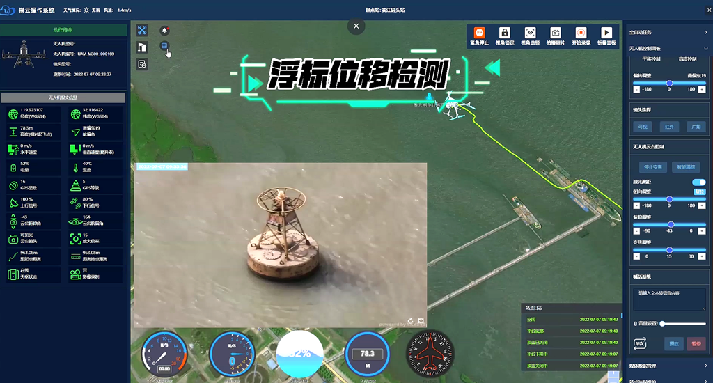 过去,港口码头、航道巡检,主要依靠人力,但港口面积大、范围广、船舶数量多,人力成本高。港口顶部设备巡检需靠人工攀爬,存在高空坠落风险,且人员巡检频次较低,不能及时发现设备的潜在风险。如今,借助无人机全自动化系统,解决了诸多难题。除此之外,还能对水面油污进行监测,判断是否有偷排偷放情况;高空喊话功能,可以随时对船舶、码头违规作业人员抓拍及喊话告警。远程化、自动化、智能化的巡检, 呵护着一江碧水,为港口发展注入科技力量。 |