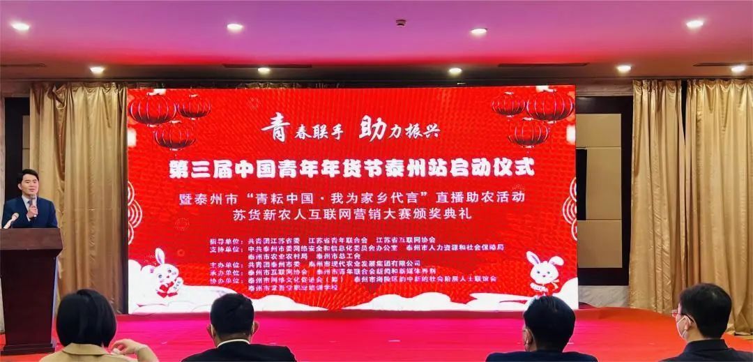 1月10日,第三届中国青年年货节泰州站启动仪式暨泰州市“青耘中国·我为家乡代言”直播助农活动——苏货新农人互联网营销大赛颁奖典礼举行。