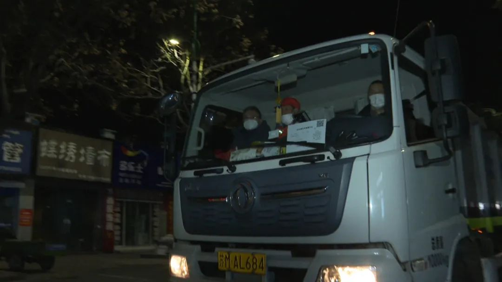 工作中,张春根和宦兆祥是朝夕相伴的搭档,生活中,他们也是频繁走动的朋友。因为今天需要起早,他们都睡的很早,春晚只看了个开头,出发前还要再瞄一眼春晚的重播。 凌晨三点,在兴化市城管局环卫处的停车场内,张春根和他的老搭档宦兆祥开始了农历新年的第一次工作。浓浓夜色中环卫清运压缩车,驶向了作业区域。 “现在开的车都是封闭式的,比较清洁,看不到垃圾,像这个车子,你在外面看不到垃圾的。”宦兆祥告诉记者,他和张春根今年都是53岁,在一起工作了20多年,他们也见证了兴化市垃圾清运工作的时代变迁,最直接的感受就是和他们一起工作的清运车已经更换了四代。