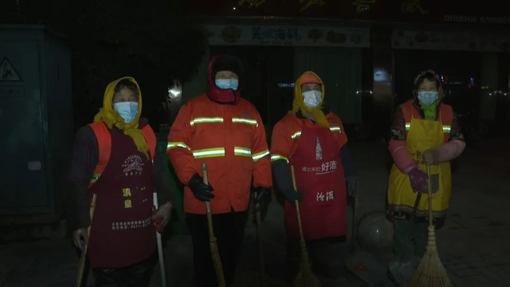 “平时饭店、超市和水果店,量稍微多一点,有时候还拿锹铲。春节期间,垃圾稍微多一点,翻倍吧。”不一会就来到了张春根、宦兆祥的工作区域——新区东南部,两位老搭档也开始逐个清倒路边的垃圾桶。“以前用锹铲,一锹一锹地挖,现在把桶推到指定的位置上,按开关按钮它就自动上去了,比较方便。” 由于春节期间的垃圾量激增,张春根和宦兆祥每天工作也会相应的延长,从早上3点到晚上10点,全天都要在路上循环作业,也许是习惯了,又或许是确实没有以前辛苦了,我们意想不到的是,他们对于这样辛苦的工作,流露出的却是满足。 采访完张师傅,记者刚刚准备离开,凌晨四点钟,远处一群若隐若现的橙色制服,又引起了记者的好奇。原来,春节期间,路面产生的垃圾也会比平时多得多,所以需要在正常班次前成立一个突击班,把夜里的垃圾进行突击清扫。