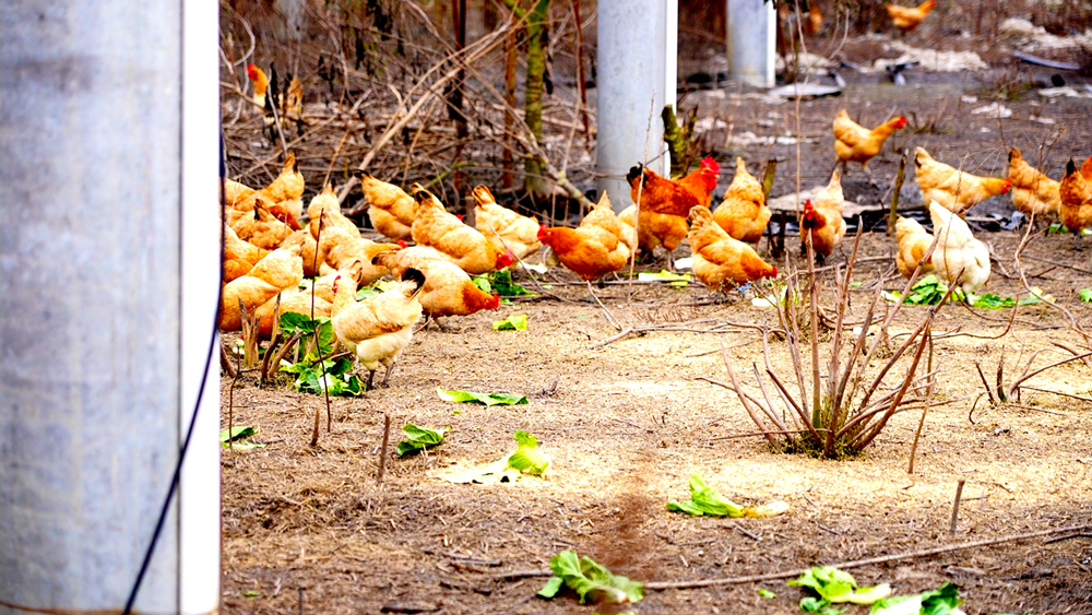 这里依垛傍水,散养鸡自由活动在广阔的空间里,几个月就能养出一身紧实的肌肉,成为远近闻名的农产品“飞鸡”。