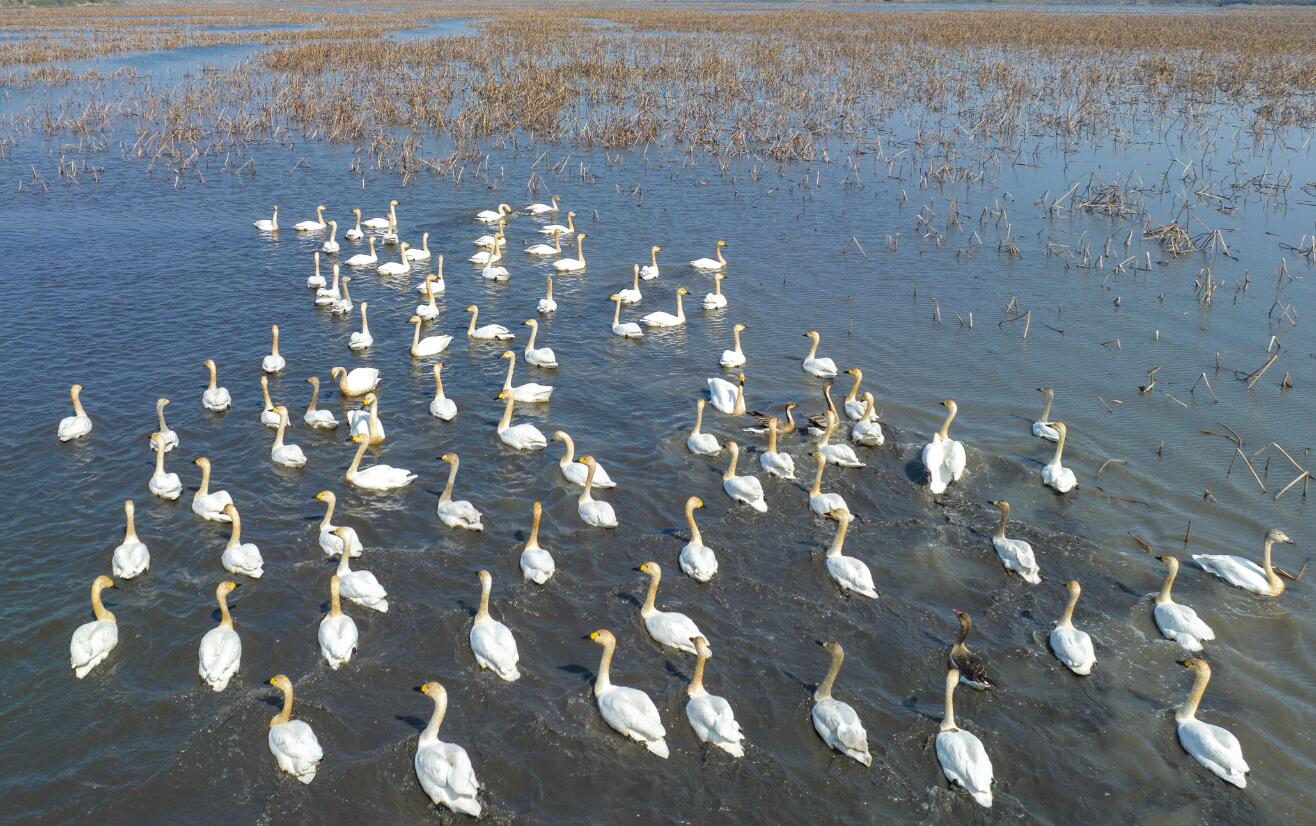 大面积的芦苇荒滩,加上水网密布,优越的生态环境吸引了大量的鸟类,甚至以种群的形式在这里繁衍生息。调查发现,徐马荒有鸟类159种,其中雀形目鸟类占46%。其次为雁形目、鹳形目、鹤形目等水鸟类,还记录到国家重点保护野生动物小鸦鹃、大天鹅及红隼等猛禽。徐马荒湿地已经成为了鸟类迁徙的停留点与避难所,为周边鸟类提供了良好的栖息环境。眺望着飞翔的鸟儿,我们的身心似乎也要挣脱地球的引力,跟随着鸟儿飞向了蓝天。