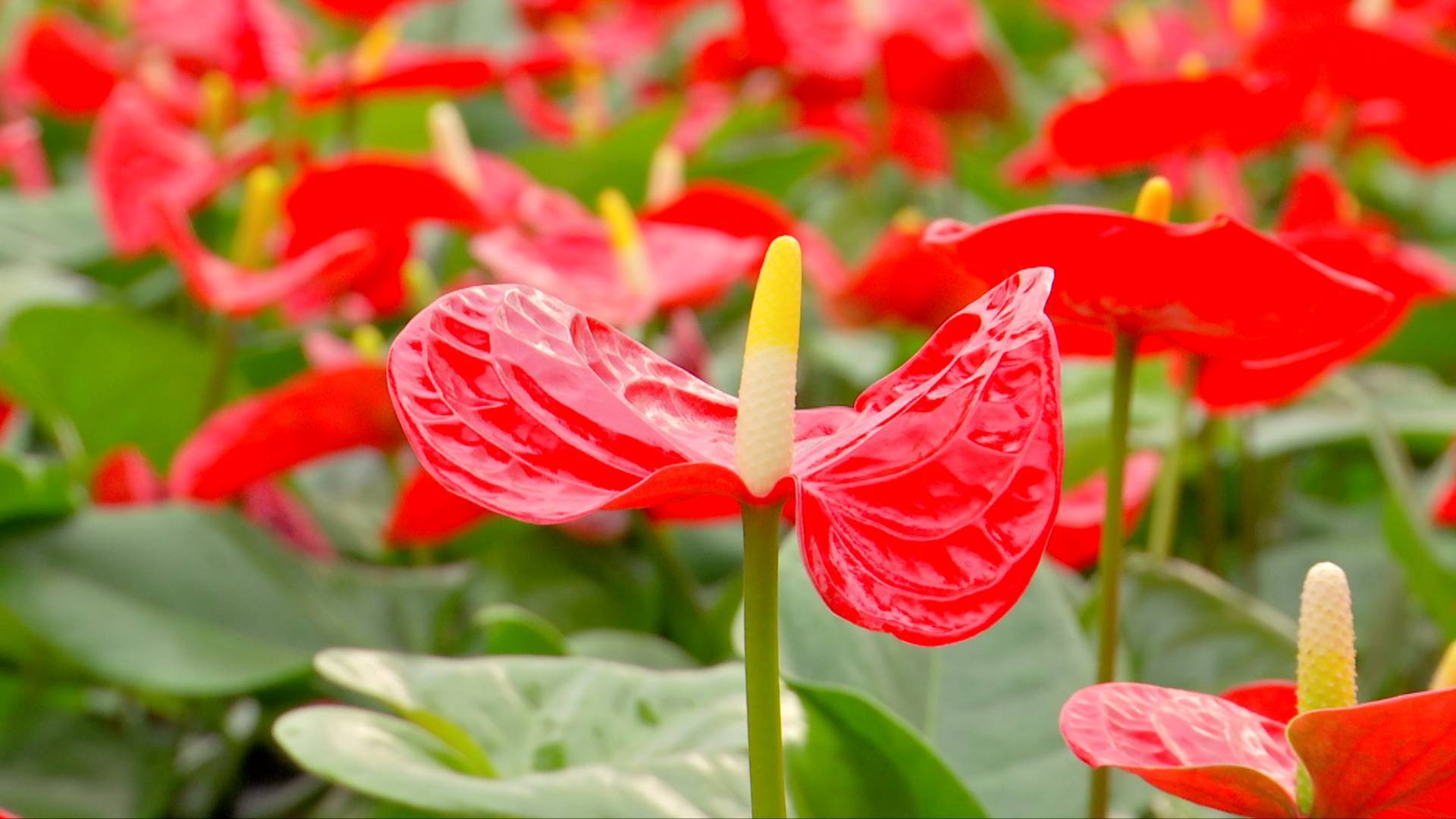 翠绿色的心形叶子,鲜艳的掌形花朵,托举着一个长长的金色花蕊,给人一种热烈的感觉。得益于科技赋能,原本只能生长于热带雨林的红掌在泰州市海陵区罡杨镇罡门村生根发芽。从一方农田到六万平方米的智能温室大棚,短短几年,红掌产业正带领着罡门村村民走上致富路。