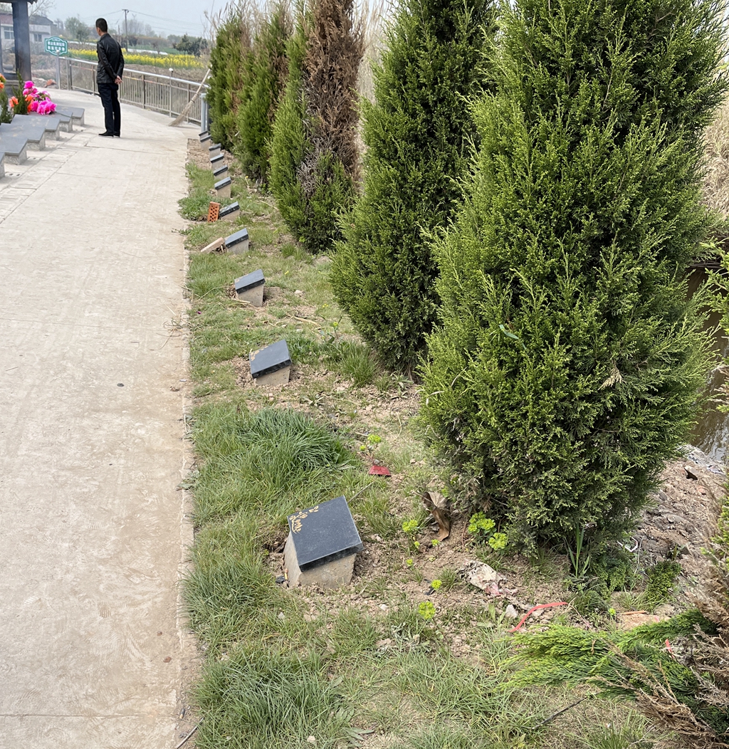 △图为马桥镇仁安公墓树葬区一角。 “近年来,靖江市全面推行节地生态安葬,新建公墓都是小型墓穴、使用卧式墓碑。靖江市还推行建设骨灰堂、壁葬区等。”殡葬管理工作负责人宦正洪介绍,靖江市也在逐步倡导树葬、花坛葬、草坪葬、江葬等生态葬,并积极落实相关减免和奖补政策,促使节地生态葬被更多市民所接受。马桥镇在泰安公墓建成庭院风格的花坛葬、树葬区后,今年又在仁安公墓建成树葬区。新桥镇也建成了树葬区和草坪葬区。 据悉,靖江市相关政策明确,对采取江葬、可降解骨灰盒葬或骨灰立体式存放等节地生态葬法处置骨灰的本市户籍居民给予相关费用减免和奖补。对选择江葬的户籍居民,除免除江葬直接费用外,再给予每例1000元的奖励;对选择可降解骨灰盒葬的户籍居民,除免除安葬费外,再给予每例1000元的奖励;对十类特殊困难群体新生骨灰,免除骨灰格位使用费。 清明祭扫秩序井然 公墓外,车辆停放有专人或指示牌引导;公墓内,绿植修剪到位,工作人员、志愿者现场倡导文明祭扫……连日来,靖江市清明祭扫秩序井然。各镇(街道、办事处)通过微信公众号、村(社区)微信群、广播喇叭、悬挂横幅、举办讲座、发放宣传资料等多种方式,引导群众文明祭扫、错峰祭扫,并全力做好清明祭扫服务保障工作。