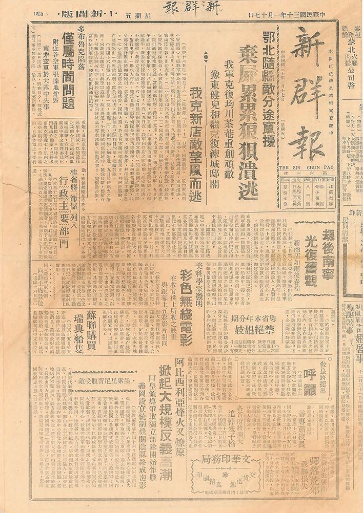 近日,由著名抗战将领陈中柱烈士在泰州创办的《新群报》真迹被发现。